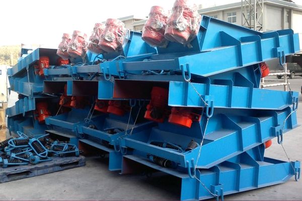 振動給料機可以把塊狀、顆粒狀物料從料倉中均勻、連續(xù)地喂料到受料裝置中;在砂石生產(chǎn)線中可以為破碎機連續(xù)均勻地喂料避免破碎機受料口堵塞;專為破碎篩分中粗破碎機前均勻輸送大塊物料設(shè)計。振動給料機采用雙偏心軸激振器的結(jié)構(gòu)特點,保證設(shè)備能承受大塊物料下落的沖擊,給料能力大。在生產(chǎn)流程中可以把塊狀、顆粒狀物料從貯料倉中均勻、定時、連續(xù)地給到受料裝置中去,從而防止受料裝置因進料不均而產(chǎn)生死機的現(xiàn)象,延長了設(shè)備的使用壽命。給料機可分為鋼板結(jié)構(gòu)和篦條結(jié)構(gòu),鋼板結(jié)構(gòu)的給料機多用于砂石料生產(chǎn)線,將物料全部均勻地送入破碎設(shè)備;篦條結(jié)構(gòu)的給料機可對物料進行粗篩分,使系統(tǒng)在配置上更經(jīng)濟合理,在破碎篩分中已作為必不可少的設(shè)備。