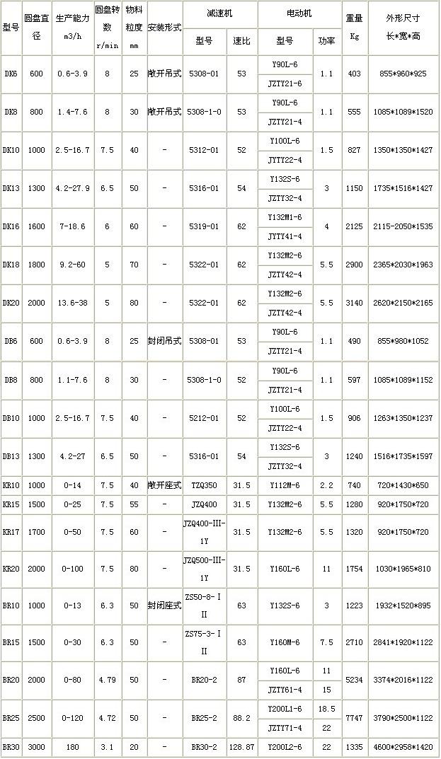圓盤給料機是一種使用廣泛的連續(xù)式容積加料設備,能均勻連續(xù)地將物料喂送到下一設備中,喂料量可以調節(jié),可喂送粉狀、小塊狀的物料(如煤粉、粘土等),是一般磨機、烘干機的常用配套設備。其中,DK型為吊開式圓盤給料機,DB型為吊閉式圓盤給料機,KR型為座式圓盤給料機。